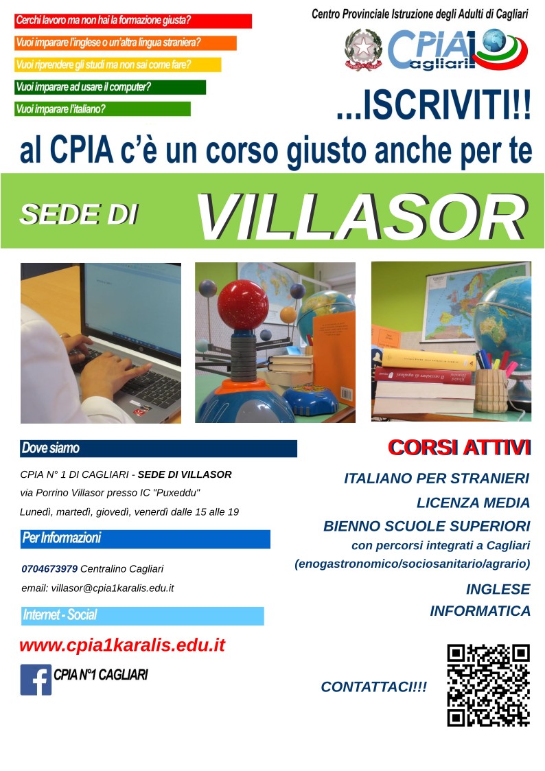 Si comunica a tutti i cittadini interessati che sono attivi presso il CPIA di Villasor