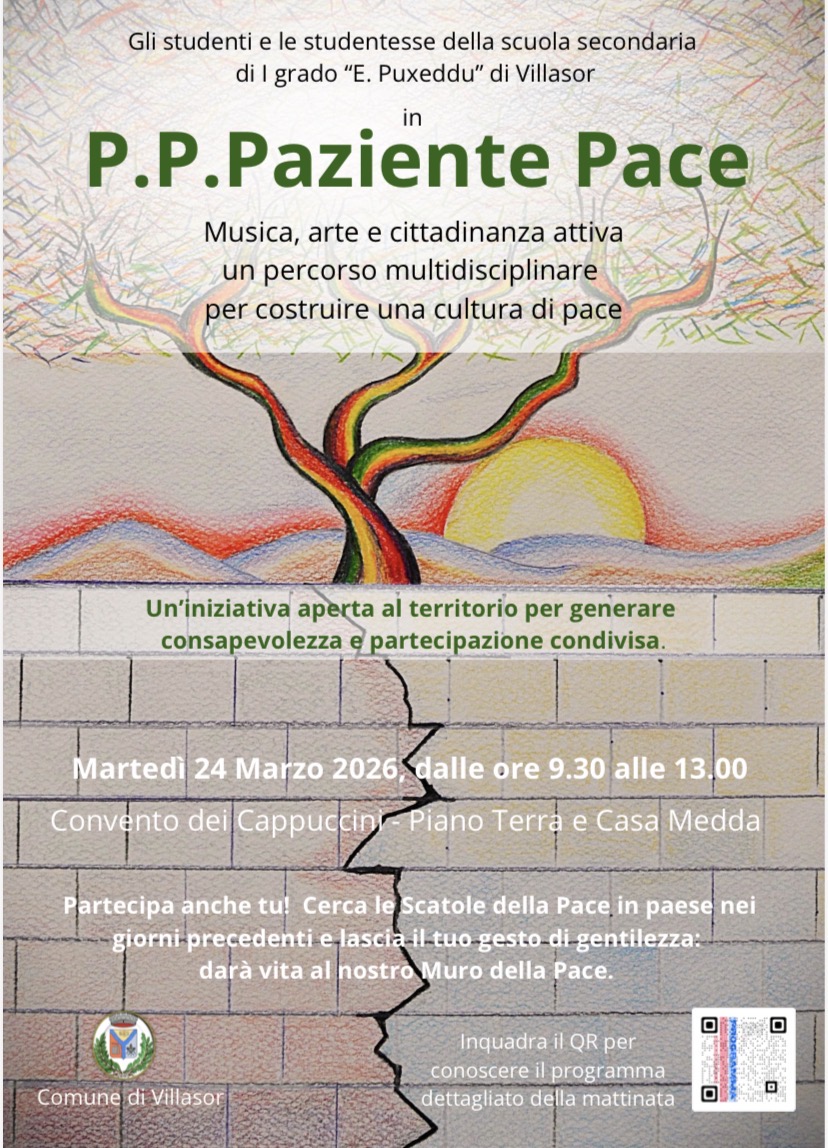 Gli studenti e le studentesse della Scuola Secondaria di I° grado "E. Puxeddu" di Villasor, con il patrocinio del Comune di Villasor, in P.P.Paziente Pace